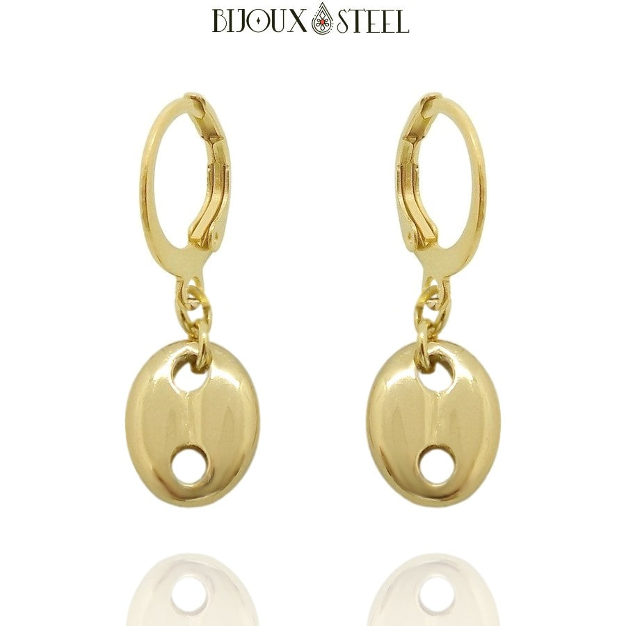 Vous aimez les petits anneaux d'oreilles et les bijoux pendants chics et discrets, retrouvez notre paire de boucles d'oreilles créoles à pendentifs grains de café en acier inoxydable faites main et disponibles en dorées ou argentées.